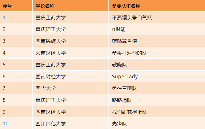 西南地区首届“天健杯”MPAcc&MAud学生案例大赛初赛共有来自21所高校的65支队伍报名参赛,其中MPAcc队伍60支,MAud队伍5支。每支队伍的案例报告经7位专家评审,以去掉最高分和最低分取平均分的方式计算每队成绩,最终10支队伍晋级复赛(9支MPAcc队伍,1支MAud队伍)。经西南地区会计审计专业学位研究生教育联盟秘书处复核,现将晋级复赛名单予以公示。