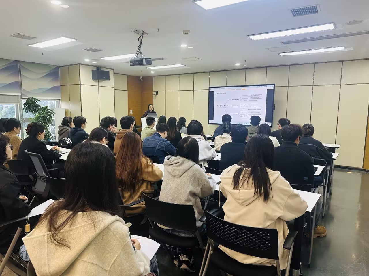 在互动交流环节,同学们围绕实习技能储备、行业发展趋势等问题积极提问。针对“新入职同事需掌握的Excel核心技能”这一疑问,罗阳鸣经理强调了公式理解、表间勾稽关系把握及数据处理能力的重要性;审计部合伙人覃琴则从行业发展角度,分析了智能化浪潮对审计行业的影响,鼓励同学们深耕管理会计知识,提升数据分析、AI工具应用等核心竞争力。同学们还实地参观了事务所的办公环境,并在互动交流环节踊跃提问,就实习技能准备、行业发展趋势等话题与事务所专家进行了深入交流。整个活动内容详实、节奏紧凑,为学生提供了一次沉浸式的行业学习体验。