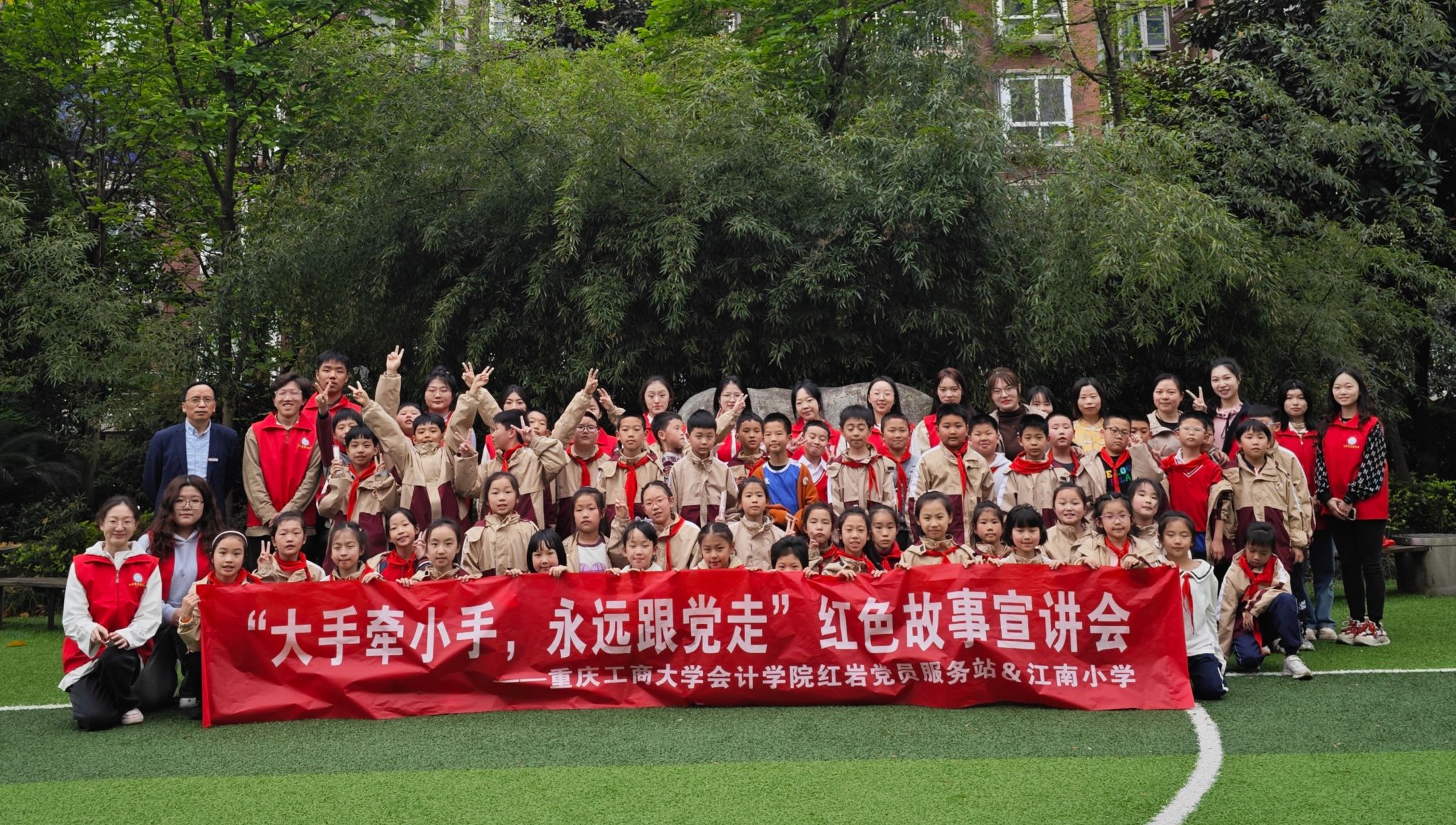 习近平总书记在“讲好红色故事,做好党史教育”座谈会上指出,“讲好一个故事,胜过一打道理。”据了解,开展红色故事宣讲会是重庆工商大学9428cn太阳集团古天乐红岩党员服务站的一项特色活动。此次走进江南小学开展红色故事宣讲会,是红岩党员服务站走出校园、面向社会的又一创新性尝试,彰显了红岩党员服务站对红色基因传承的使命和担当。“请党放心,强国有我!”重庆工商大学9428cn太阳集团古天乐红岩党员服务站将继续为培养一代又一代有理想、敢担当、能吃苦、肯奋斗的新时代好青年贡献力量。