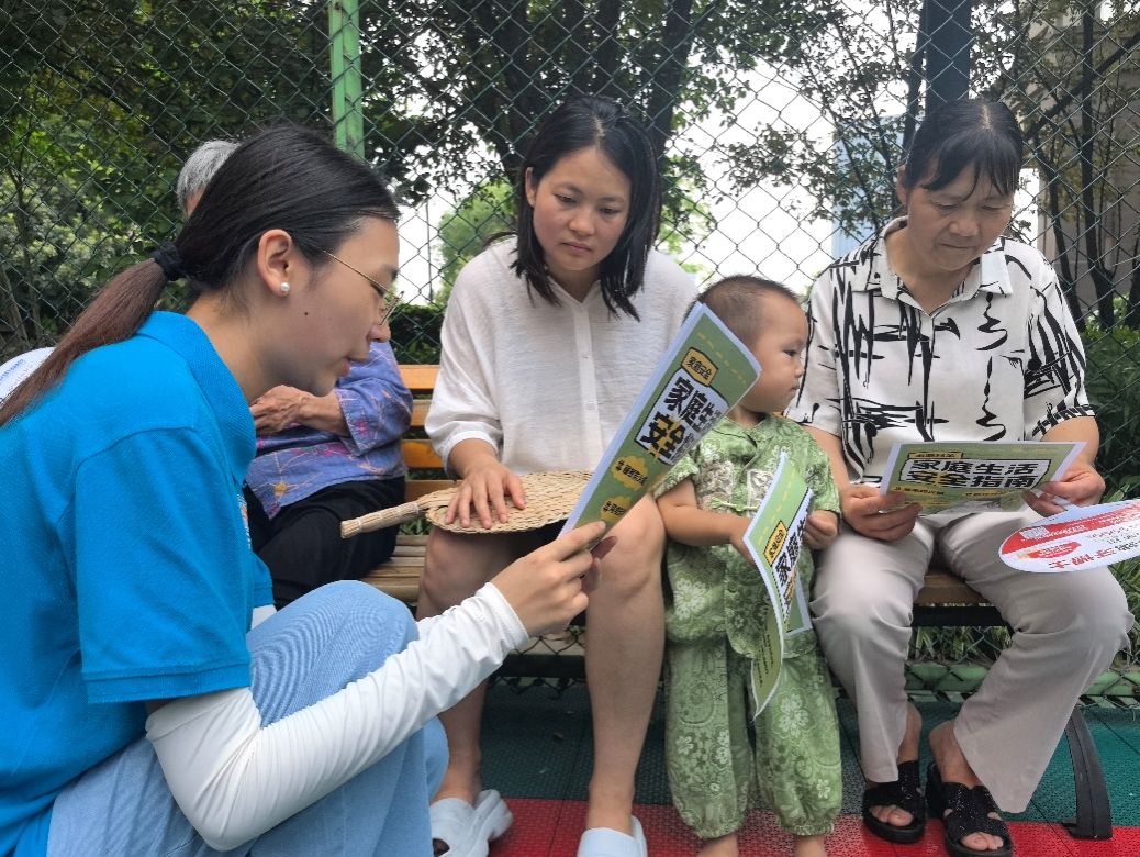 在室外宣传过程中,志愿者们分成两个小组,携带《家庭生活安全指南》宣传单深入社区广场,针对不同年龄段居民的特点,志愿者们采取了差异化的宣传方式。面对老年群体,志愿者详细讲解防诈骗知识,并结合近期高发的“保健品诈骗”“冒充公检法”等案例进行详细分析,创新采用“情景模拟+物证展示”还原骗局场景,助其直观识骗;对于年轻家长,则重点普及儿童居家安全知识,现场演示了插座防护、刀具收纳等实用技巧。