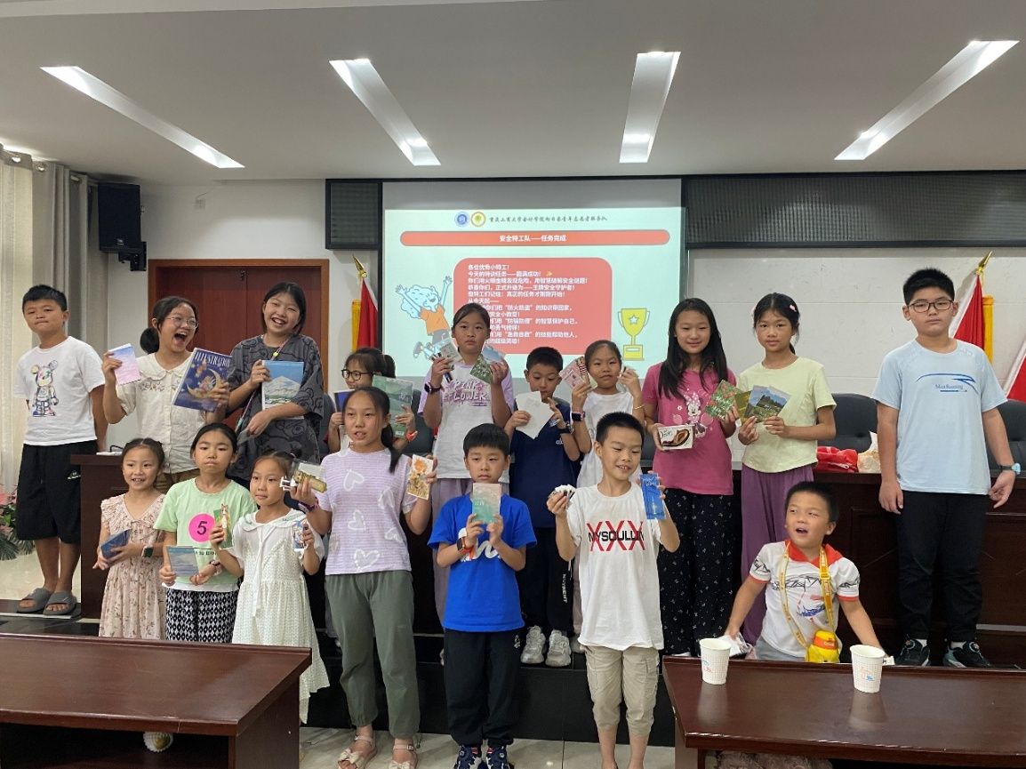 在结营仪式上,首先是龙门社区的工作人员代表进行致辞,她由衷地感谢了重庆工商大学9428cn太阳集团古天乐“赓续文脉,‘碚’育青苗”中华文化传承团的老师及同学们的辛勤付出,带来了别开生面的的社区公益托管活动。并表示在未来,有机会也会积极合作,共建社区美好教育氛围。团队负责人李语典则通过展示如非遗漆扇拓印、爱国手抄报、友善卡及家书等成果,回忆四天活动的精彩内容,进行汇报。四天的活动构建起“文化传承-价值培育-安全守护”的三维育人体系:在非遗工坊里触摸传统漆艺的纹理,感受中华文化的魅力;在情景剧中演绎诚信故事,领悟道德准则的意义;在防溺水演练中学习救生技能,筑牢自我保护的防线。这种“理论浸润+文化熏陶+实践体验”的模式,让社会主义核心价值观在非遗工坊的肌理、情景剧场的光影、实践演练的场域中,完成从认知理解到行为践行的闭环生长。一位孩子的家长王女士感慨:“孩子回家主动站军姿唱国歌,还说写作业要像‘爆破王叔叔’一样专注认真。”