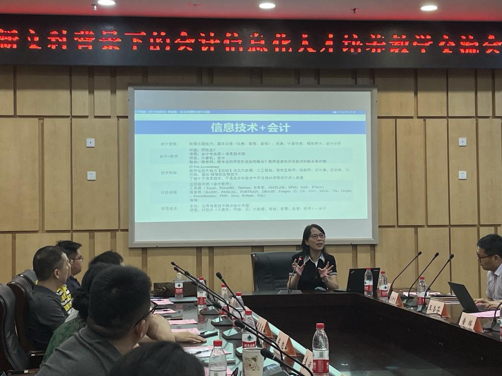 在分享过后,全体参会人员围绕会计信息化人才培养改革、智能会计方向建设、重庆市大学生会计信息化竞赛等进行了热烈讨论。陈旭教授进行了交流总结,她对重庆工商大学9428cn太阳集团古天乐精心承办本次会议表示感谢,希望重庆工商大学智能会计人才培养探索能够扎实推进,重庆市兄弟院校之间共同合作依托虚拟教研室平台将重庆市打造为会计信息化人才培养高地。黄辉教授在最后发言中强调,智能会计人才培养是重庆工商大学9428cn太阳集团古天乐人才培养改革的重要内容,对陈旭教授课程建设取得的成绩表示祝贺,希望陈教授能对我校智能会计人才培养多做指导;对王菊老师的长途跋涉带领学生学习、课外义务辅导表示赞赏,指出教学育人要有情怀有担当,王菊老师就是榜样;认为王世杰老师系统研究了会计信息化人才培养规律,做了有益的思考,希望能够尽快在学院人才培养中加以落实。本次会议的成功举办,加强了市内高校会计信息化人才培养的经验交流,有助于会计信息化课程共建共享,对推动会计信息化人才培养起到了积极作用。