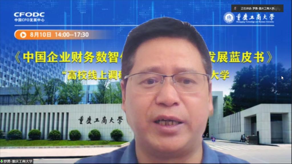 郭良川主任介绍了中国CFO发展中心的情况和蓝皮书编撰的初衷,对重庆工商大学对调研活动和蓝皮书编写的支持表示感谢。罗勇院长对中国CFO发展中心对我校的调研表示欢迎,并希望各位专家在疫情好转后线下来校当面指导,对调研活动安排和我校参加人员进行了介绍。