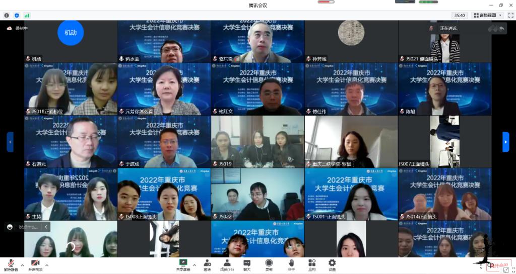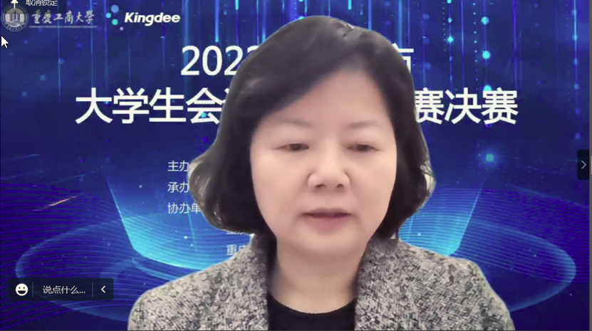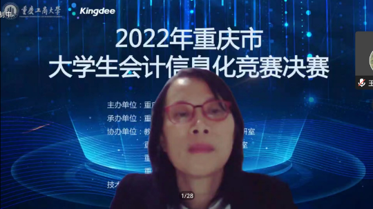 为积极适应数字化时代需要,推动高校财会类专业“新文科”建设,推进会计信息化教育教学改革,增进全市高校财会类师生交流,提升大学生会计信息化素养和实践创新能力,由重庆市教育委员会主办,重庆工商大学承办,教育部会计信息化课程虚拟教研室、重庆市成渝数智会计虚拟教研室、重庆市会计信息化名师工作室、重庆工商大学9428cn太阳集团古天乐协办,金蝶软件(中国)有限公司提供技术支持,2022年重庆市大学生会计信息化大赛决赛于11月19日在重庆工商大学顺利进行。全市共有18所院校的22支队伍通过初赛选拔进入到决赛。重庆市教委高教处处长蒋云芳、重庆工商大学校长孙芳城出席了决赛开幕式。本次决赛采取线上方式进行。