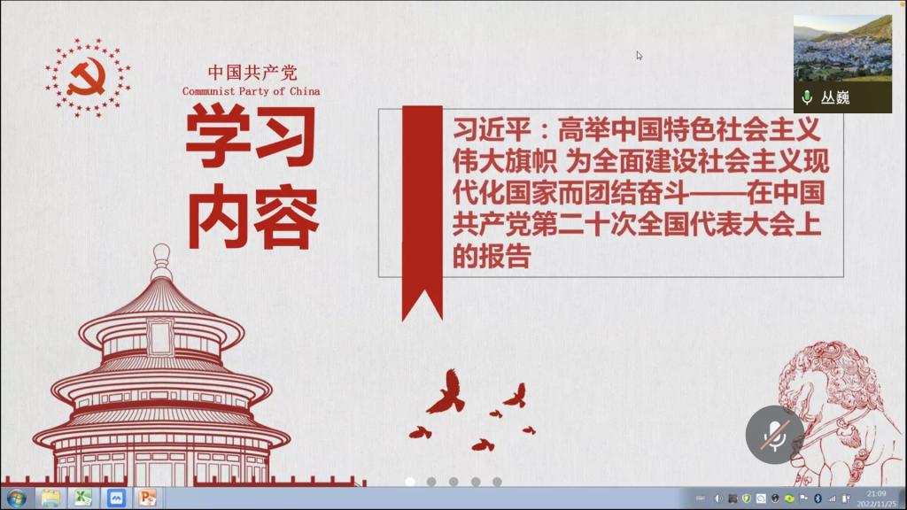 随后,丛巍老师针对学习内容发表了感想。她谈到,二十大报告的第五部分第一次单独成章的把教育、科技、人才三者放在一起一体部署,体现了我国对“教育、科技、人才”三者之间辩证关系的深刻认识。要想推动科技可持续发展,就需要锤炼高素质人才队伍,而这就呼唤高质量教育体系的搭建。在新形势下,持续深入推进科教兴国战略,把核心技术牢牢掌握在手中,是把握未来发展主动权的必然要求。随后她又谈到,二十大报告的第十五部分对新时代全面从严治党伟大战略作了深刻的总结,突出强调打铁必须自身硬,以“得罪千百人、不负十四亿”的使命担当祛疴治乱。风清气正的党内政治生态不断形成和发展,使党在革命性锻造中更加坚强有力,从而能够持之以恒地推动全面从严治党向纵深发展。