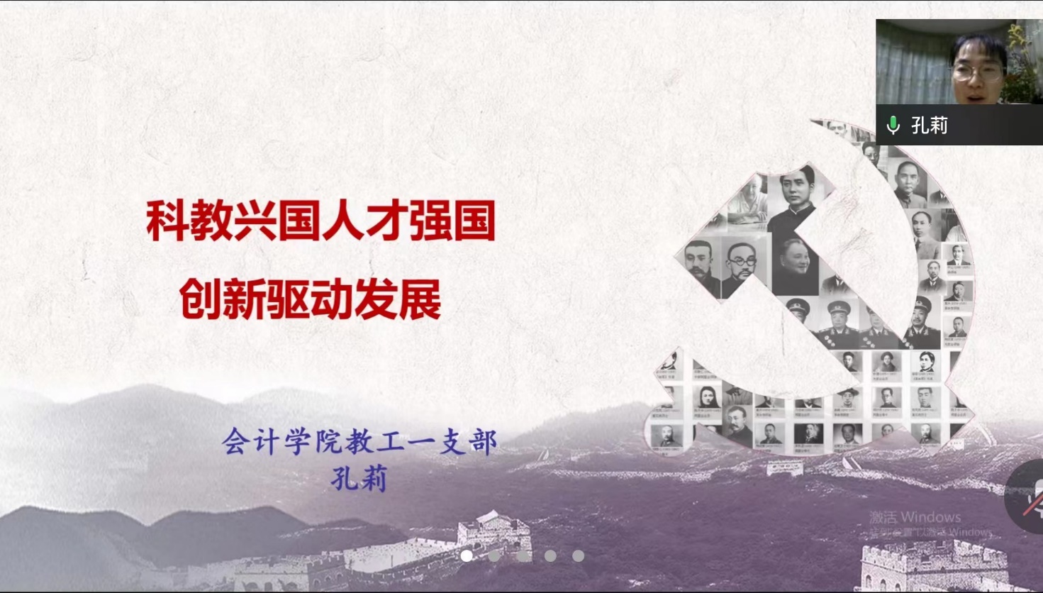 活动一开始,是由组织委员孔莉和统战委员詹学刚领学二十大报告中的相关内容。孔莉针对报告第五部分“实施科教兴国战略,强化现代化建设人才支撑”,从“教育、科技、人才统筹部署”、“育才造士,为国之本”、“科技为本,创新为源” 和“功以才成,业由才广”四个方面进行了解读。她指出,为了突出创新在我国现代化建设全局中的核心地位,二十大报告首次将教育、科技、人才三大战略进行了统筹部署。过去十年,我们党致力于办好人民满意的教育,建成了世界上规模最大的教育体系,铺平了加快建设教育强国之路。我国还加快了科技创新步伐,在关键核心技术实现突破,迈进了创新型国家行列。而要建设科技强国,必须以教育强国和人才强国作为支撑。孔莉最后总结道,加快建设教育强国、科技强国、人才强国,任重而道远。当任务完成之时,我们实现中国式现代化就有了深厚的基础、不竭的动力和坚实的保障。作为高校教育工作者,各位党员同志应当结合本专业,在自己的教育领域贡献一份力量。