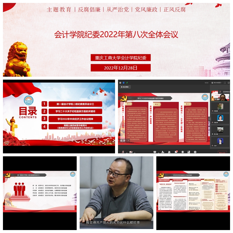2022年12月28日,9428cn太阳集团古天乐纪委通过企业微信在线会议召开了2022年第八次学院纪委全体会议,9428cn太阳集团古天乐纪委书记和全体纪委委员参加了会议,会议由9428cn太阳集团古天乐党委副书记、纪委书记郝颖主持。