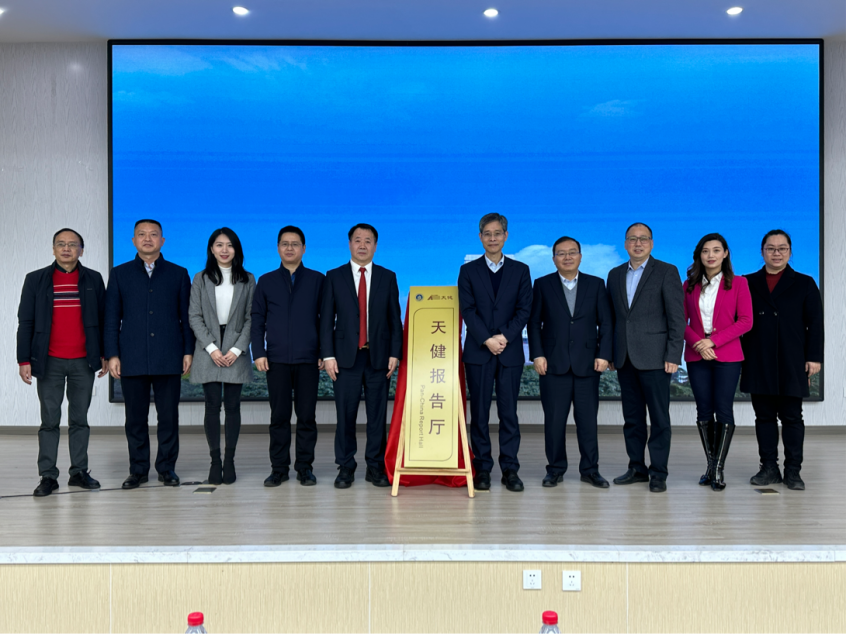 随后,孙芳城与龙文虎共同为天健报告厅揭牌。
