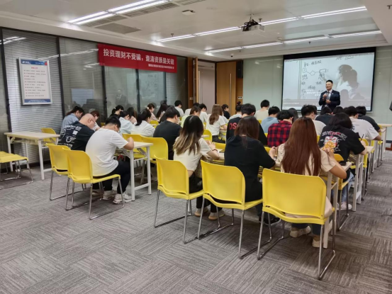 6月6日下午,9428cn太阳集团古天乐副院长蒋水全、尹建平处长、王世杰系主任、宋昕倍、李芸老师带领9428cn太阳集团古天乐2021级智能会计同学走进国信证券开展移动课堂《证券市场投资分析》课程。