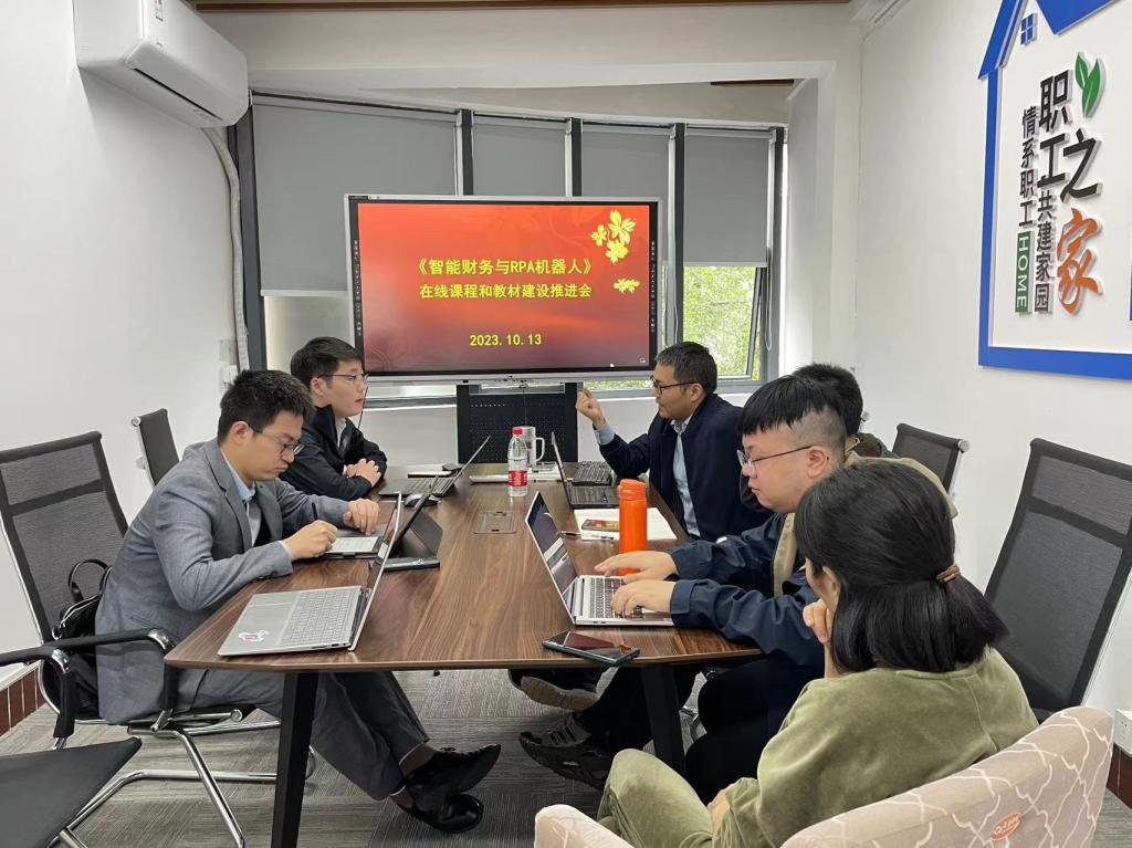 郑建华、韦浪等针对课程建设重点和问题进行深入讨论,明确建设《智能财务与RPA机器人》在线课程的一流课程目标,在智能财务的基础上,深化RPA技术的应用,突出自身特色。同时,充分利用新道科技教学平台,深化交流合作,加快在线课程的建设。