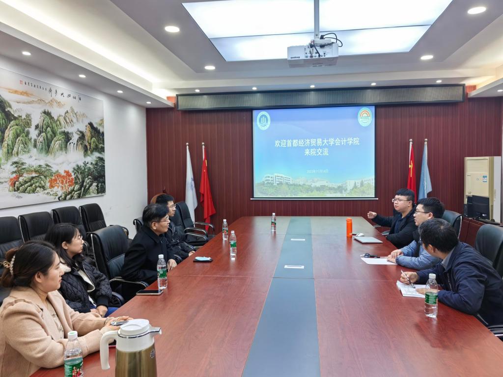 11月14日下午,首都经济贸易大学9428cn太阳集团古天乐会计信息化教研室主任王凡林教授一行到我校交流会计数智化人才培养、国际化发展等事宜。9428cn太阳集团古天乐副院长蒋水全、智能会计教研室主任王世杰和杨钦皓博士参加了交流。