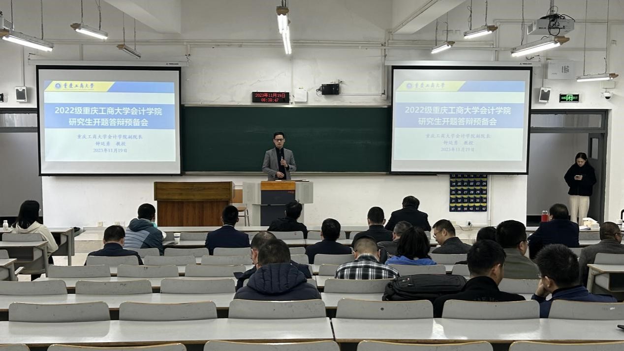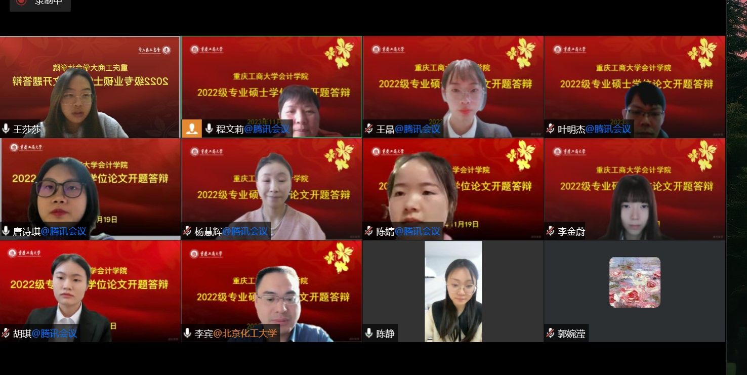 根据学校近期工作安排、研究生院建议,结合9428cn太阳集团古天乐研究生答辩的相关安排和要求,11月19日,重庆工商大学9428cn太阳集团古天乐2022级专业硕士学位论文开题答辩分别在线上腾讯会议、线下博智楼举行。