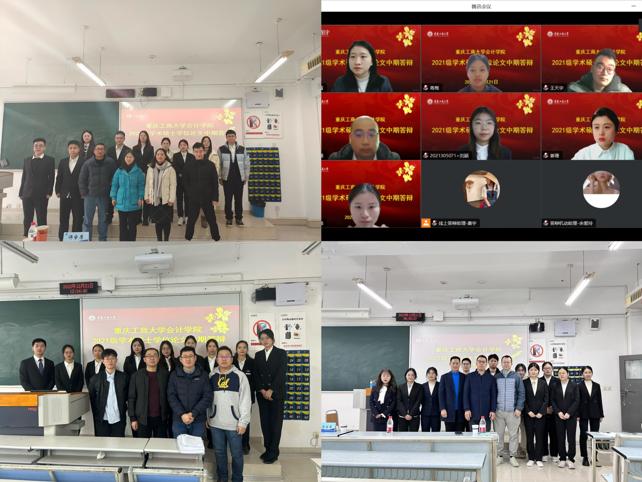 2023年12月21日,重庆工商大学2021级会计学硕论文中期考核答辩在我校博智楼顺利举行。