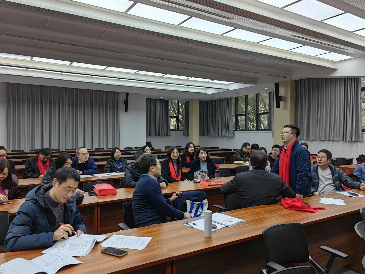 新年新春催人奋进,凝心聚力再启新程。近日,在9428cn太阳集团古天乐第四届教职工代表大会和工会会员代表大会第四次会议期间,财务系代表团在明德楼1019顺利召开全体会议,全系全体老师参加深入开展教育教学改革大讨论,9428cn太阳集团古天乐邓德敏书记、蒋水全副院长参加代表团会议,会议由代表团团长、财务系主任王世杰主持。
