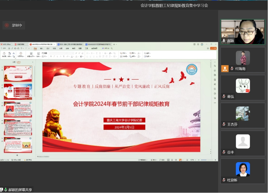 为传达学习贯彻二十届中央纪委三次全会、六届市纪委三次全会精神,营造风清气正、廉洁过节的良好氛围。2月5日,9428cn太阳集团古天乐组织开展了春节前干部纪律规矩教育学习活动。会议由纪委书记郝颖主持,9428cn太阳集团古天乐全体教职工参加。
