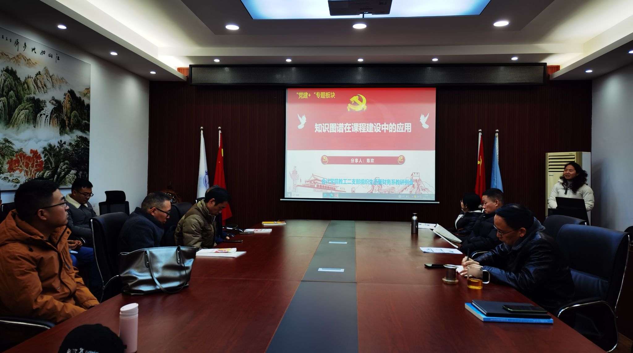 在第二阶段“党建+”专题环节,陈欢同志分享了“知识图谱在课程建设中的应用”,详细讲解了知识图谱助力财务教学科研的意义、思路、路径、技术及优秀案例。