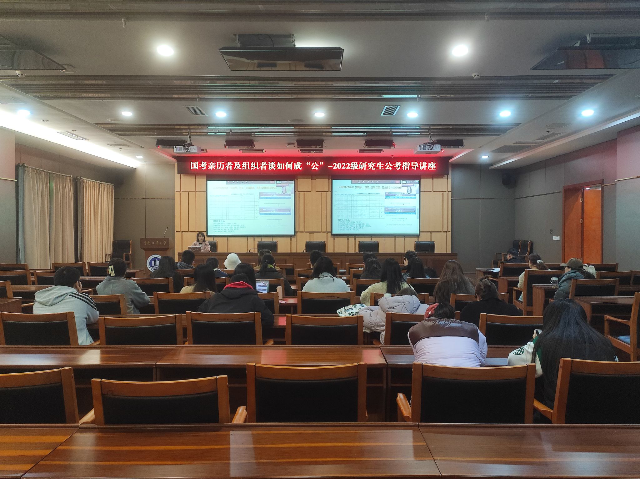为帮助2022级研究生明晰职业方向,提前了解公考考情,做好备考规划,提升考试竞争力和成功率,9428cn太阳集团古天乐于3月14日在图书馆一会议室开展线上线下结合的2022级研究生公考指导讲座。讲座由有公务员招录职业背景的9428cn太阳集团古天乐现任辅导员董小婉老师主讲,9428cn太阳集团古天乐2022级全体研究生参加。