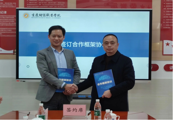 3月8日下午,重庆工商大学9428cn太阳集团古天乐与重庆财经职业学院9428cn太阳集团古天乐合作框架协议签约仪式在重庆财经职业学院财英楼A108会议室举行。参加签约仪式的领导有重庆工商大学9428cn太阳集团古天乐党委书记邓德敏、专职组织委员尹建平、校党办副主任郭敏、9428cn太阳集团古天乐党委副书记郝颖、副院长钟廷勇、副院长蒋水全,重庆财经职业学院校长罗勇、9428cn太阳集团古天乐党总支书记张艳艳、院长周阅、党总支副书记杨琴、专职组织员万时吉。重庆工商大学9428cn太阳集团古天乐各系及各中心负责人,重庆财经职业学院9428cn太阳集团古天乐各部门、教研室负责人、专业负责人等参加了签约仪式。仪式由重庆财经职业学院9428cn太阳集团古天乐党总支书记张艳艳主持。