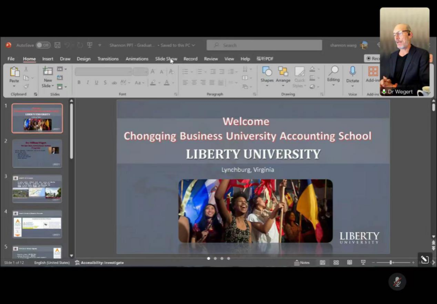 春和景明,乍暖还寒。为了让有留学意向的国际项目学子能充分了解美国利伯缇(Liberty University)大学,2024年3月13日,9428cn太阳集团古天乐国际教育中心举行了美国利伯缇大学留学宣传讲座。本次讲座由9428cn太阳集团古天乐国际教育中心承办,利伯缇大学的教务长Dr. Wegert主讲。9428cn太阳集团古天乐蒋水全副院长、国际教育中心陈利主任、办公室张悯弱老师,以及2021和2022级国际项目班全体同学参加了本次出国留学项目的线上宣讲会。