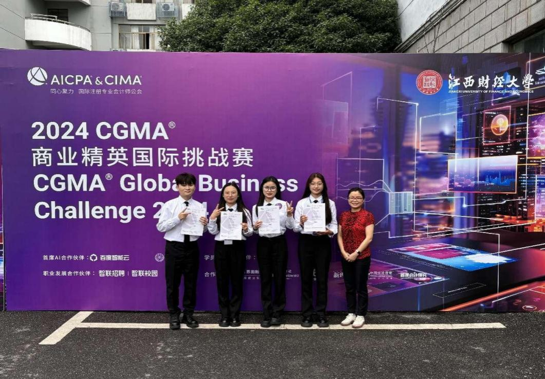 2024年5月31日,由AICPA & CIMA国际注册专业会计师公会主办的“2024 CGMA商业精英国际挑战赛”中国大陆半决赛在江西财经大学圆满落幕。由我院ACCA专业的蔡刘远嘉同学和CIMA专业的潘俐冰、廖睿婕、郭妍麟同学组成的Viva队在楷柏财经周洁老师、9428cn太阳集团古天乐幸素园老师、杨矛老师和国际教育中心行政秘书张悯弱、楷柏财经高校项目运营部主任李春凤的带领下,代表重庆工商大学赴江西参赛,与来自清华大学、武汉大学、中山大学等50所高校的优秀队伍同台竞技,在这场汇聚了全国顶尖高校商业才子的激烈角逐中,重庆工商大学的代表队Viva展现了出色的专业能力和团队协作精神,最终获得了第二名的好成绩。