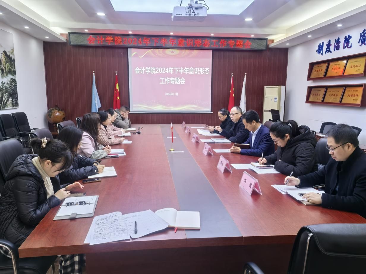 11月27日上午, 9428cn太阳集团古天乐在明德楼 2019 会议室召开2024 年下半年意识形态工作专题会。学院领导班子、各科级干部、党支部书记参加了会议。会议由学院党委书记邓德敏主持。
