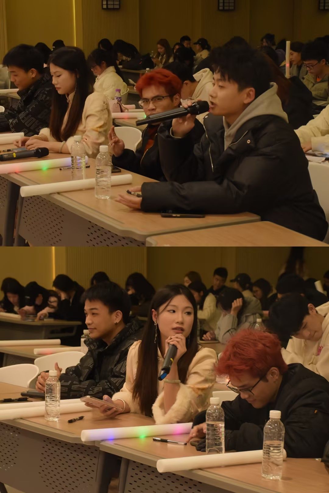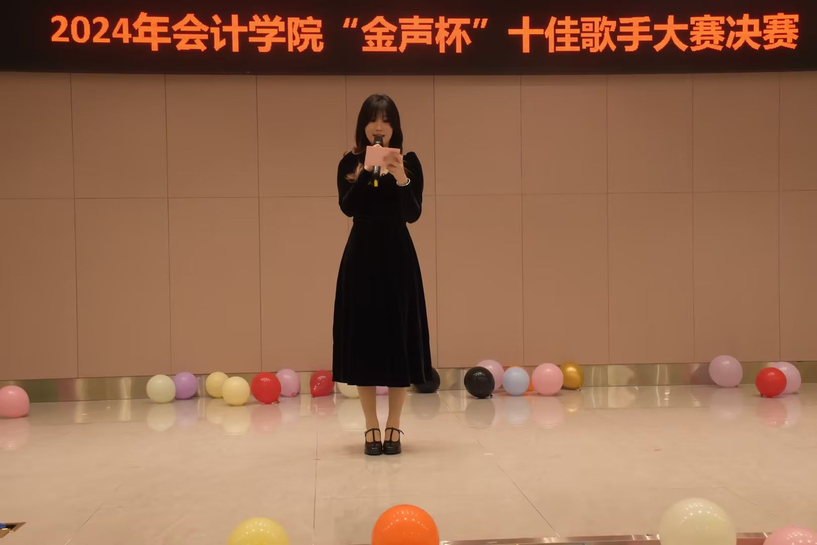 此次大赛分为三个环节:第一轮为帮唱环节,由选手和参赛嘉宾组合献唱;第二轮为独自演唱环节,选手个人展示;第三轮为观众投票环节,通过统计票数来选出最终优胜的选手。活动伊始,李思诗同学进行开场节目表演,她与帮唱嘉宾共同演唱了《angel said》,台下掌声不断,观众们情绪高涨,由此,拉开了比赛的序幕。第一轮,选手们激情澎湃、声情并茂的演唱为观众带来了一场视听盛宴。一首《不该》调动起观众们的情绪,台下的欢呼声伴随着掌声不断……