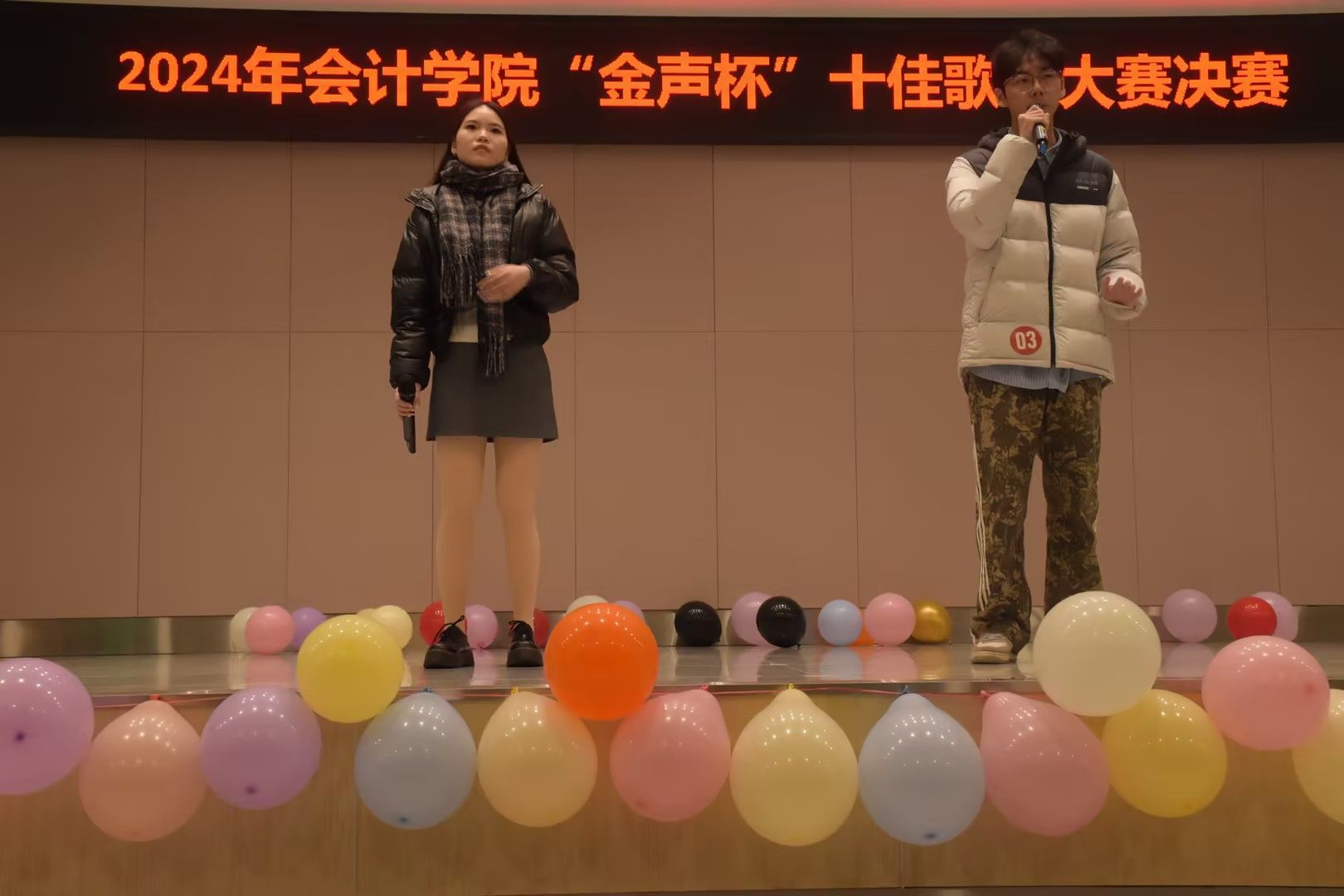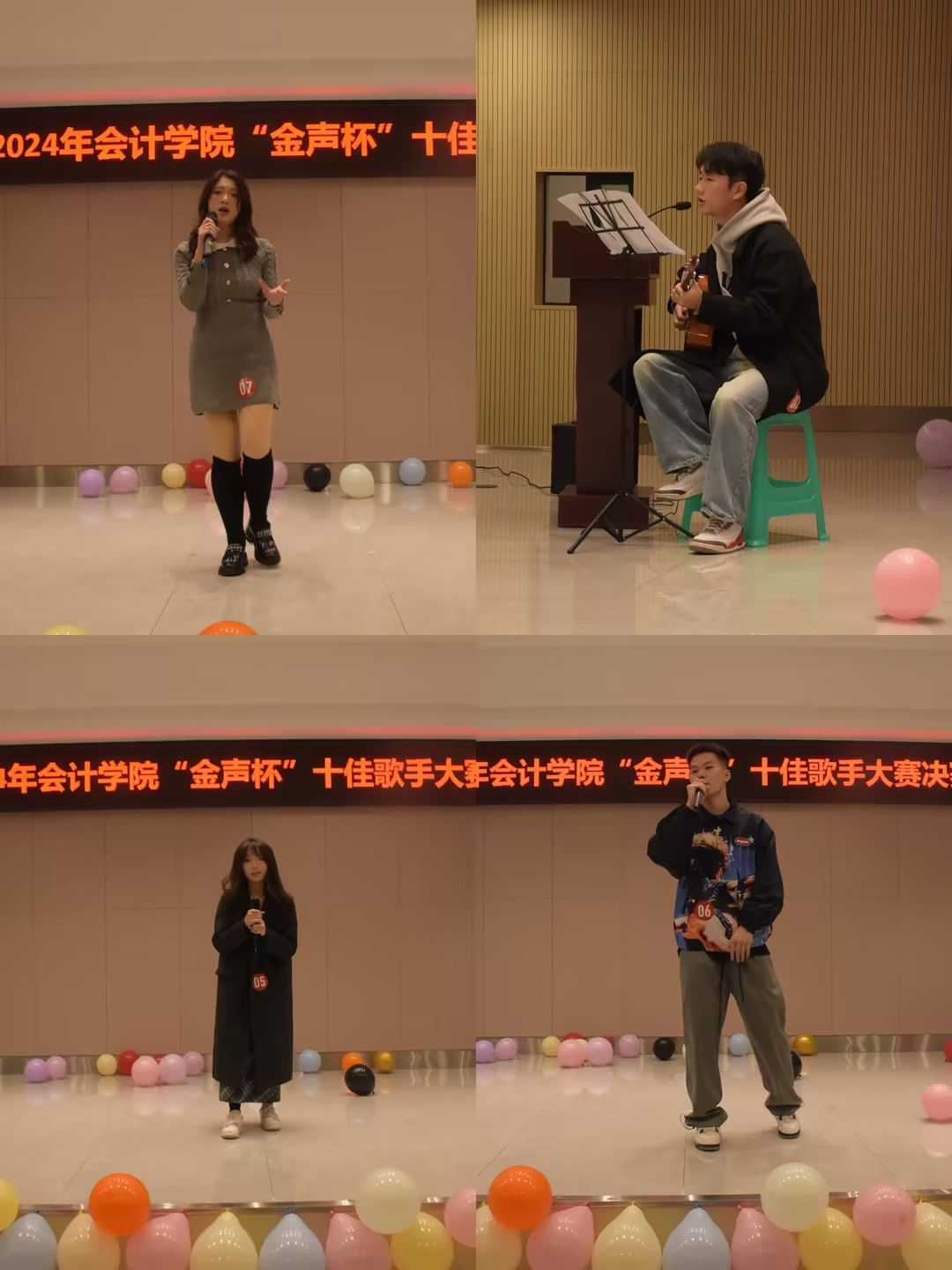 “灼灼青春仲,悠悠白日升。”同学们通过“金声杯”十佳歌手这个舞台,亲身融入艺术之中,表达了自己对于歌唱的热爱,彰显了青春的热血澎湃。
