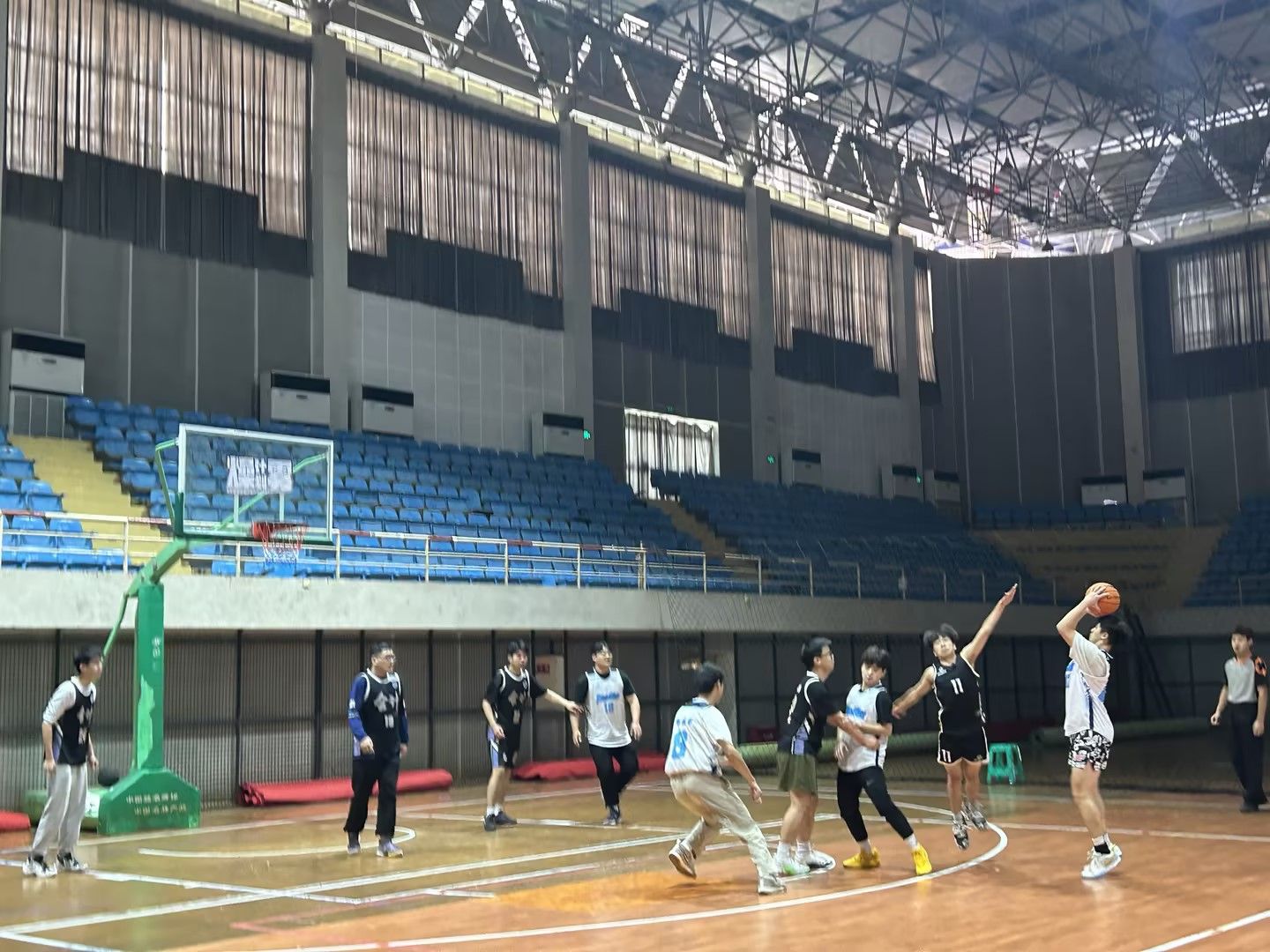 篮球比赛中的,那一个个投篮,犹如流星划过夜空,点亮了赛场,同时也点燃了在场每一个人的激情,这不仅是一场比赛,更是一种艺术的享受。在这充满力量与竞技的比赛中,完全展现出团结协作的力量。每一次的传球、投篮都在传递一种精神:永不放弃的勇气与心手相连的情谊。