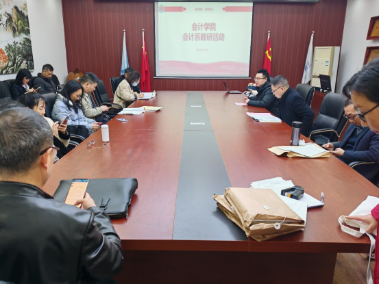 2025年3月7日下午,会计系在明德楼2019会议室召开教研活动,本次教研活动的主题是“优化人才培养方案”。活动由会计系主任蒋弘主持,会计系教师和梅波副院长参会。
