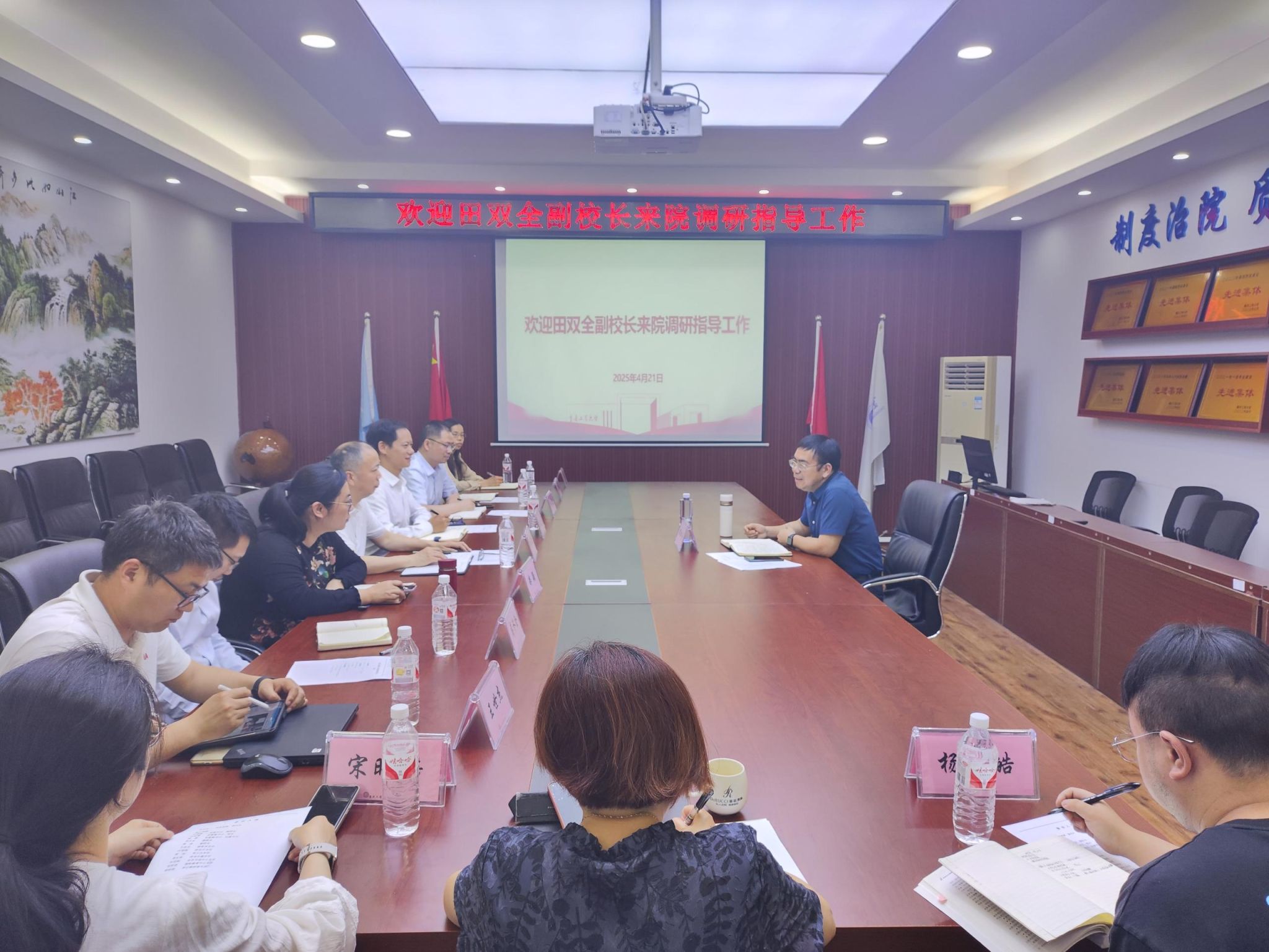调研中,田双全副校长对会计学院取得的成绩给予了充分肯定,并对相关问题逐一进行回应和交流。他强调,今年是学校深化改革、强化学科专业建设之年。学院一是抓好学科建设,厘清学位点建设内涵和责任,高标准、高质量做好会计学博士点建设工作,努力构建完善的本硕博贯通培养体系,并系统谋划会计专博申报工作。二是做好科学研究,突出特色优势,主动对接国家战略及区域经济社会发展需求,加强科研团队建设,积极培育国家级重点项目及国家级人才。三是强化人才培养,在“商工融合”上创新发力,结合人工智能时代特点,推动交叉学科建设。四是积极开展合作交流,发动全院力量,拓宽校地、校企合作,为经济社会发展提供智力支持。五是有序推进全年重点工作,做好巡察整改和本科教育教学审核评估整改“后半篇文章”。六是严格遵守财经纪律,加强清廉学院建设,扎实开展深入贯彻中央八项规定精神学习教育。
