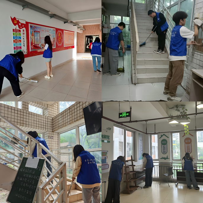 五一劳动节来临,当整个校园沉浸在假日的静谧氛围中时,重庆工商大学9428cn太阳集团古天乐的一群楼栋干部身着醒目的宝蓝色志愿者马甲,手持清扫工具,踊跃投身校园清洁行动。他们以实际行动诠释劳动精神,彰显新时代青年的蓬勃朝气与青春风采。