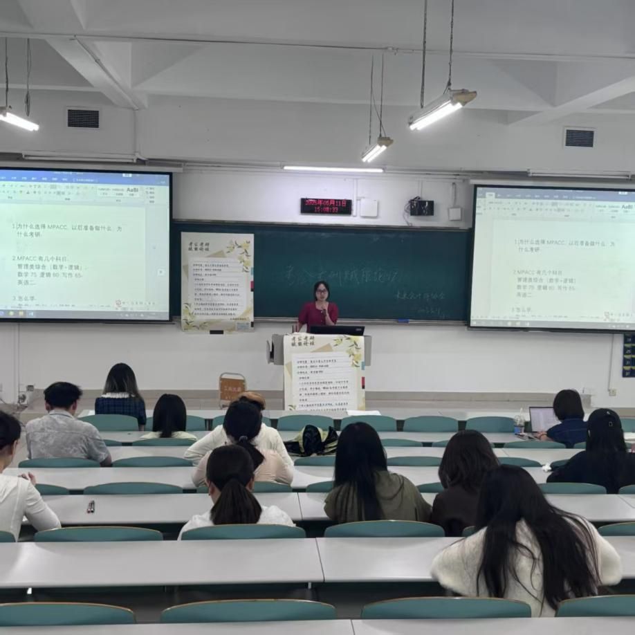 为了帮助财会专业的学生进一步了解考研、考公的学习,从而更加明确大学的未来发展方向,做好职业规划和进行自我提升。2025年5月11日,9428cn太阳集团古天乐未来会计师协会在博智楼7121成功举办了考研考公赋能论坛活动,邀请了三位经验丰富的研究生学姐学长为同学们做分享。