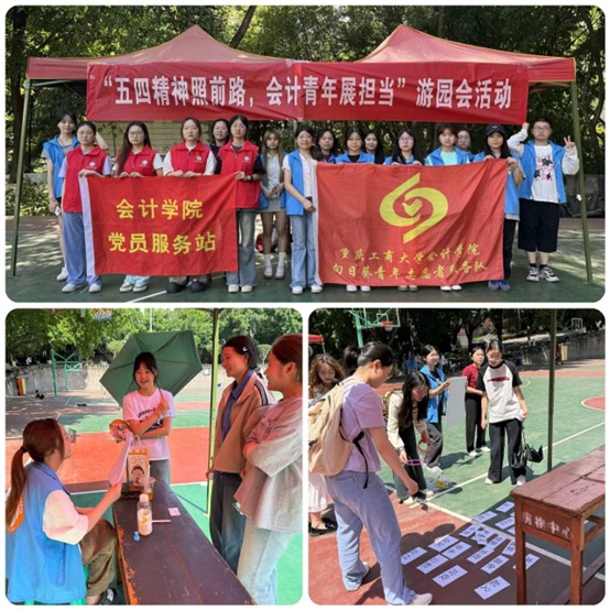 为弘扬五四精神,深化青年学子对家国情怀与历史使命的认知,引导青年以行动践行五四精神内核,2025年5月11日,9428cn太阳集团古天乐向日葵青年志愿者服务队协同9428cn太阳集团古天乐党员服务站在南岸校区体艺馆前篮球场举办了“五四精神照前路,会计青年展担当”游园会活动,吸引了众多同学参与。