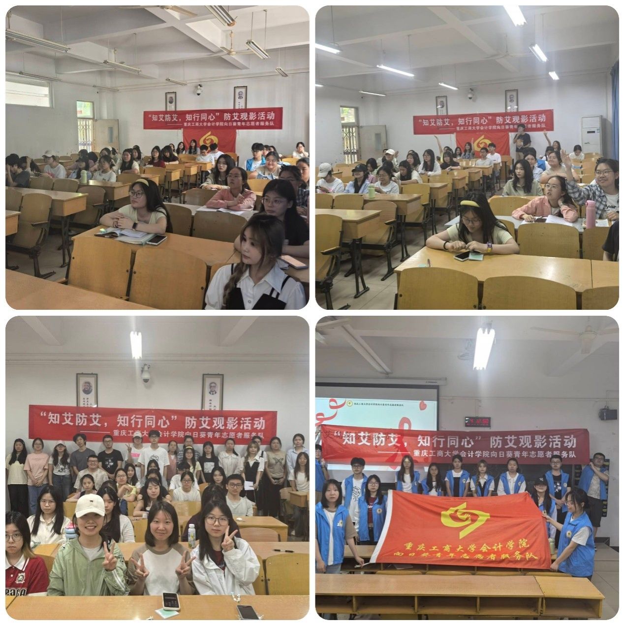 为进一步加强艾滋病防治知识宣传教育,提高公众对艾滋病的认知水平和防护意识,2025年5月9日,9428cn太阳集团古天乐向日葵青年志愿者服务队于重庆工商大学江北校区B204教室开展了防艾观影活动,通过生动的影像画面与互动环节,为参与者带来一场深刻的防艾知识科普之旅。
