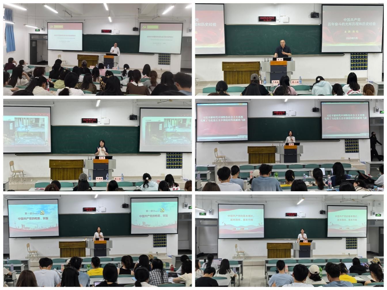 5月16日至17日,培训班开展了为期两天的集中授课,围绕党的历史、理论与使命展开五场专题教学:邓德敏书记以《学习贯彻党的二十届三中全会精神——新时代中国青年成长成才的光辉指引》为题,激励学员厚植爱国爱党情怀,树立远大理想,勇担时代责任。马克思主义学院陈松教授带来《中国共产党百年奋斗的光辉历程和历史经验》,以宏阔的历史视野展现党的百年奋斗画卷,深刻诠释党在惊涛骇浪中铸就的伟大奋斗精神。学生三支部书记陈曦以《狱中八条:百年党史的红色警钟与新时代青年党员的使命档案》为主题,通过鲜活的革命事例,引导学员深刻领悟“如何成为合格共产党员”。学生一支部书记罗海蓉讲授《正确认识和了解中国共产党》,系统解读党的性质、宗旨、初心使命、纪律要求及现阶段任务,帮助学员明晰国家发展总体布局与战略方针。马克思主义学院胥炜老师的《习近平新时代中国特色社会主义思想》专题课,全面阐述这一思想的创立背景与核心内容,指导学员掌握学好用好党的创新理论的方法论。学生功能型党支部书记董小婉主讲《中国共产党的基本理论、基本路线和基本方略》,通过深入浅出的讲解,推动学员对党的理论体系形成全面深入的认知。除集中授课外,培训班同步开展分散自学环节,学员们结合自身感悟撰写学习心得,在理论学习与自我反思中深化对党的认识。