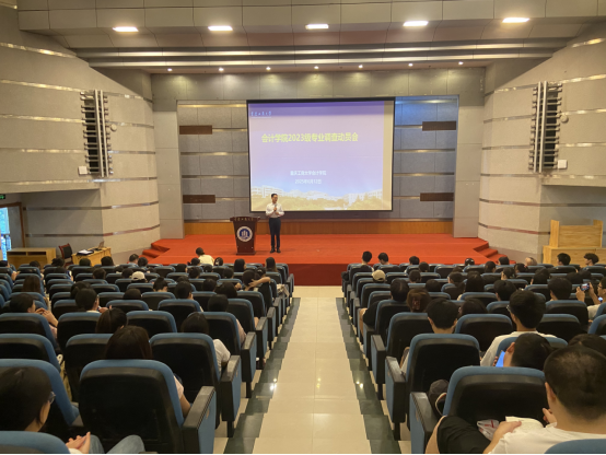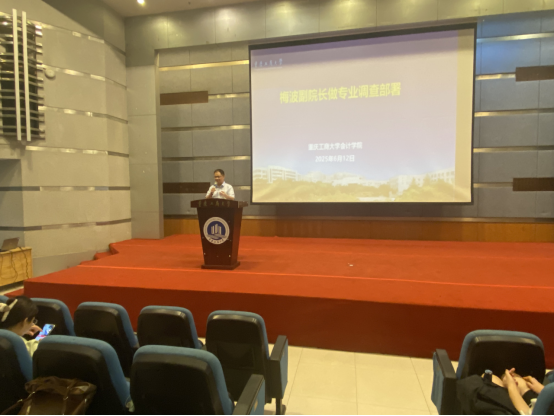 2025年6月12日中午,9428cn太阳集团古天乐2023级专业调查动员会在南岸校区博智楼7100报告厅隆重召开。9428cn太阳集团古天乐院长钟廷勇、副院长梅波、审计系副主任袁利华、教务办谢柏静等老师出席会议,2023级全体学生参会。