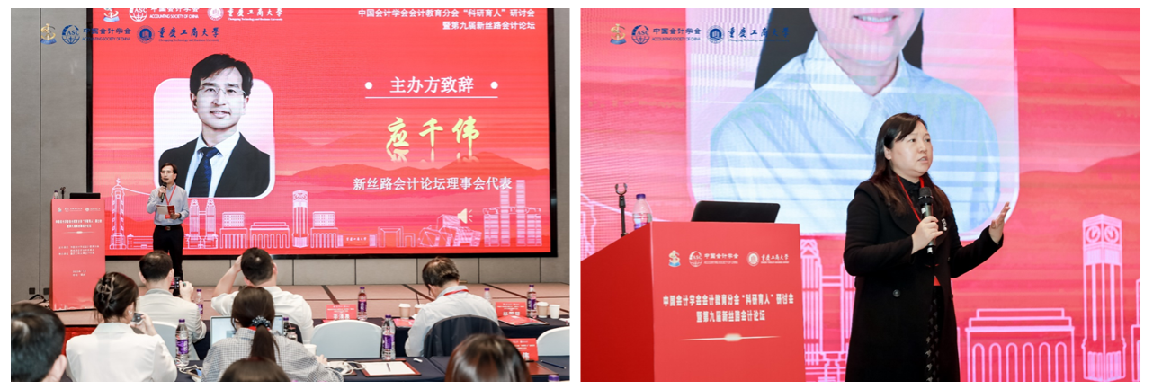 为深入学习贯彻党的二十大和二十届三中全会精神,探索全面深化改革背景下中国特色会计理论研究与实践路径,推动会计学科专业和“科研育人”体系的深化发展,助力新时代会计人才培养质量的全面提升,2025年10月18日,由中国会计学会会计教育分会和新丝路会计论坛理事会主办,重庆工商大学9428cn太阳集团古天乐承办的中国会计学会会计教育分会“科研育人”研讨会暨第九届新丝路会计论坛在渝隆重召开。重庆工商大学党委常委、副校长田双全、中国会计学会会计教育分会副会长王永海、新丝路会计论坛理事会代表辛清泉、中国会计学会会计教育分会秘书长王艳、新丝路会计论坛理事会秘书长陈磊等出席开幕式。来自香港中文大学、复旦大学、西安交通大学、四川大学、西南财经大学、中山大学、厦门大学、上海财经大学、中央财经大学、中南财经政法大学等全国40多所高校200余位专家学者参会。