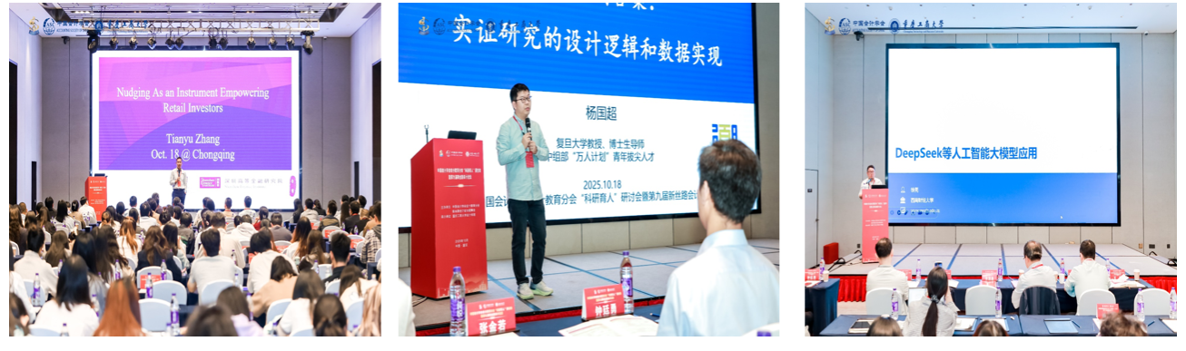 随后,在主题报告环节,香港中文大学(深圳)讲席教授、西南财经大学9428cn太阳集团古天乐学术院长张田余教授、复旦大学杨国超教授、西南财经大学徐亮教授分别以《Nudging as an Instrument to Empower Retail Investor》《从问题到答案:实证研究的设计逻辑和数据实现》《大模型与智能体技术及在企业风险控制中应用》为题做了主题报告。西南大学杜勇教授、西北工业大学陈琳教授、四川大学李子扬教授分别做了串讲报告。主题报告和串讲报告分别由广东外语外贸大学王艳教授、重庆工商大学蒋水全教授、重庆大学刘斌教授主持。