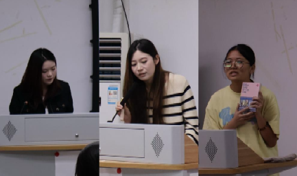 在分享环节中,三位学生代表依次分享了他们的阅读感悟。沈惠香同学围绕《被讨厌的勇气》一书,聚焦青春成长中常见的自我认知问题,用生动的语言阐释“课题分离”等核心理念,引导同学们打破心理束缚,勇敢做自己。李盈霜同学通过《红色家书》的分享,带领大家重温革命先辈的家国情怀,激发对青春责任与担当的深刻思考。李烽钰同学则从《带壳的牡蛎是大人的心脏》切入,结合书中温暖故事,探讨青春成长中的困惑与治愈,传递积极向上的生活态度。三位分享者准备充分、表达生动,引发了现场师生的热烈共鸣。