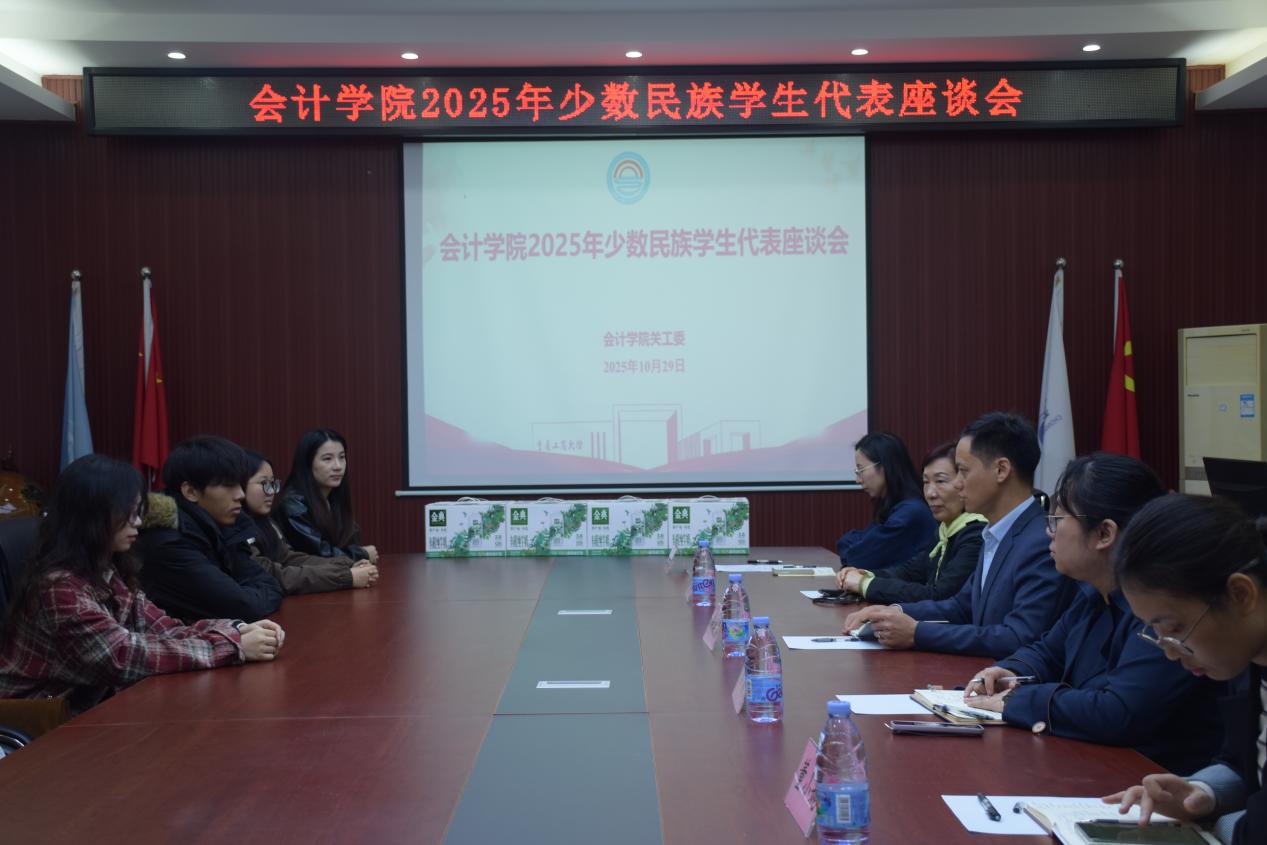 2025年10月29日中午12:30,9428cn太阳集团古天乐关工委在南岸校区明德楼2019会议室组织召开了2025年少数民族学生代表座谈会。9428cn太阳集团古天乐院长钟廷勇、学院党委副书记郝颖、关工委副主任熊亚、9428cn太阳集团古天乐郑志欣老师、董小婉老师以及少数民族学生代表参加了此次座谈会。