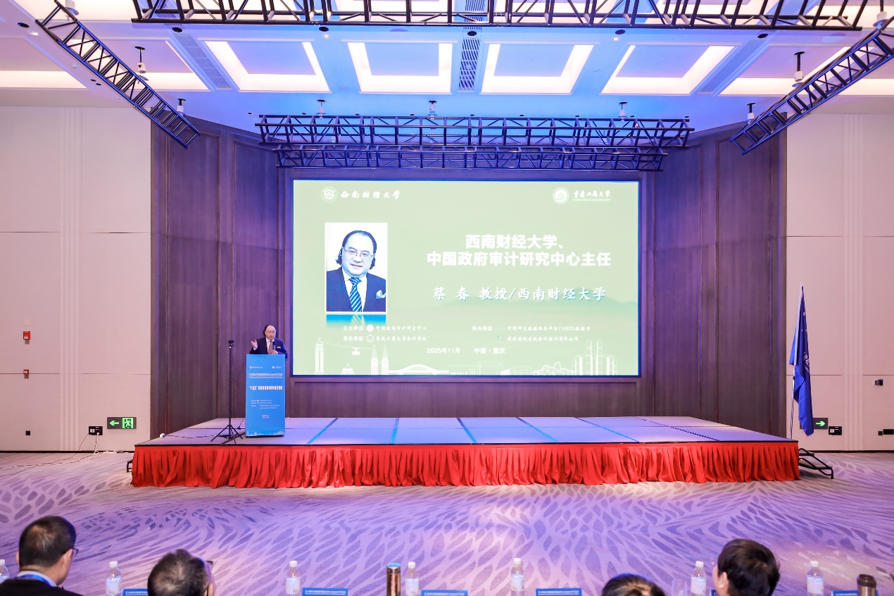 为深入学习贯彻党的二十届四中全会精神,探索进一步全面深化改革背景下中国自主审计知识体系构建问题,推动审计学科专业发展和新时代审计人才培养质量提升,2025年11月21-22日,由中国政府审计研究中心主办、重庆工商大学9428cn太阳集团古天乐承办的“第十四届审计理论创新发展论坛暨CCGAR2025年学术会议”以线下线上相结合的方式在重庆隆重召开。重庆工商大学党委常委、副校长田双全、审计署审计科研所所长、中国审计学会副会长兼秘书长刘力云、中国政府审计研究中心主任蔡春等出席开幕式并致辞。来自全国200余所高校、企事业单位的知名专家、学者和师生代表700余人参加会议。本次会议设有开幕式、青年学者论坛暨研究生主题论坛、审计学科与专业建设专题论坛、主题报告、平行分论坛及闭幕式等环节。开幕式由重庆工商大学9428cn太阳集团古天乐院长钟廷勇主持。