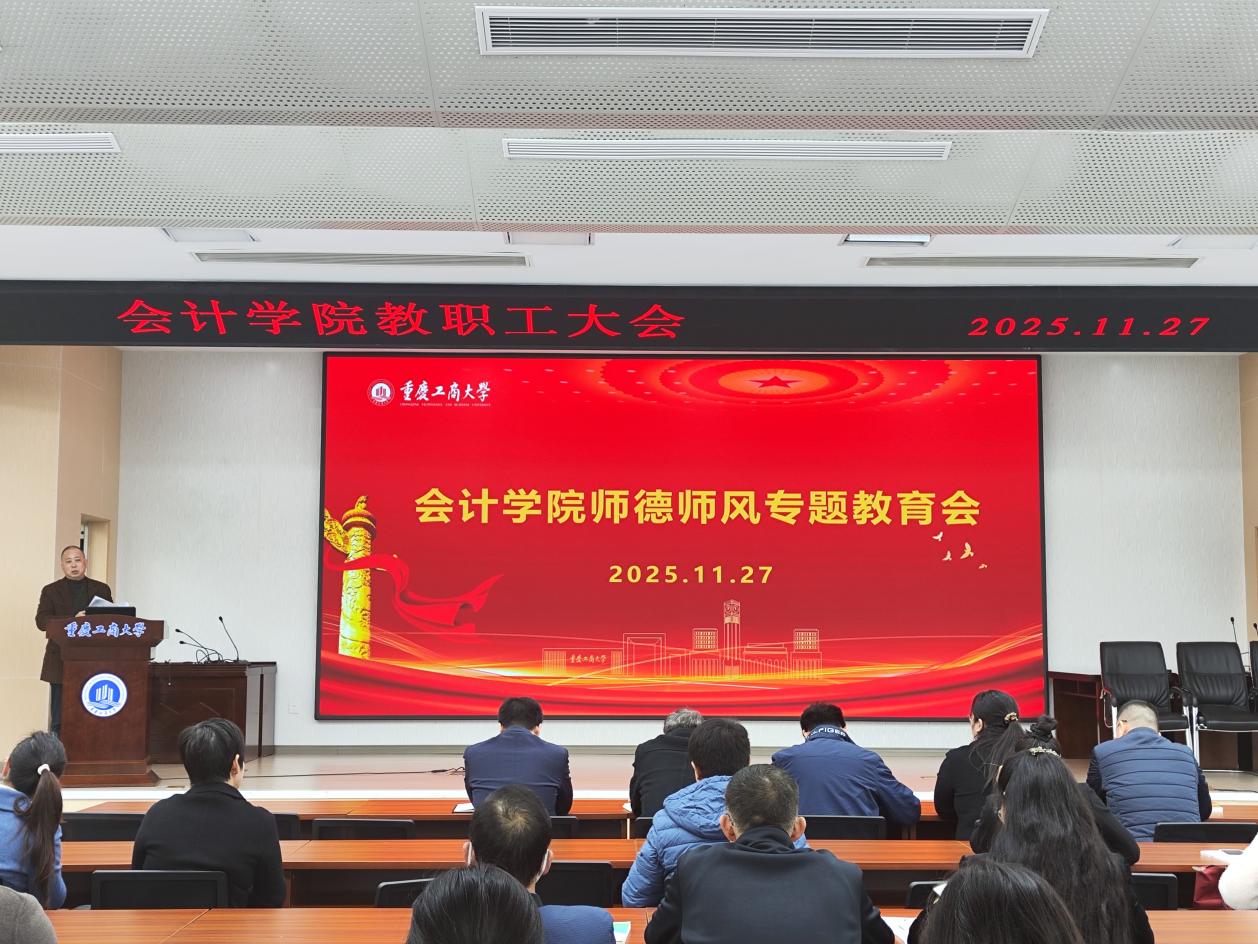 会上,邓德敏领学了《关于开展重庆工商大学2025年师德师风专题教育的通知》《中共中央 国务院关于弘扬教育家精神加强新时代高素质专业化教师队伍建设的意见》等文件精神,同时,从指导思想及目标、组织领导、实施安排、工作要求等方面解读了《9428cn太阳集团古天乐2025年师德师风专题教育方案》。他强调,师德是教师的立身之本,师风是学院发展的精神支柱,师风师德建设是一项关乎学院政治生态、育人根基和长远发展的系统性工程,责任重大、意义深远。全体教职工要筑牢师德师风之堤,持续营造更加风清气正的学院政治生态和良好育人环境,护航学院高质量发展。