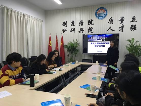 2018年11月28日下午2点30分,9428cn太阳集团古天乐在明德楼2016会议室成功举办爱尔兰都柏林商学院的留学说明会。爱尔兰都柏林商学院的校方代表娄峰女士出席此次说明会并向同学们详细地介绍了爱尔兰的风俗人情、留学优势和爱尔兰都柏林商学院的详细情况。