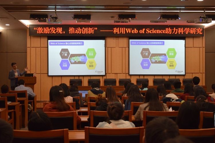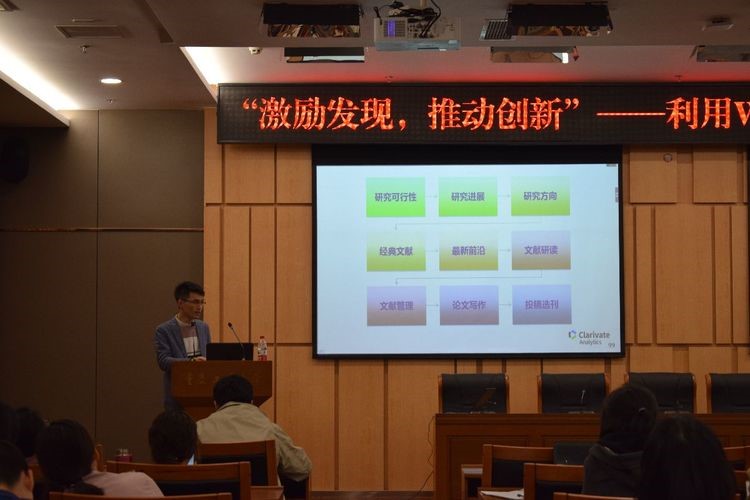 2019年3月28日下午两点半,重庆工商大学9428cn太阳集团古天乐在图书馆第一会议室举办了主题为“激励发现,推动创新——利用Web of Science助力科学研究”的主题讲座,主讲嘉宾是来自科睿唯安团队的王振老师,9428cn太阳集团古天乐的老师及同学们参加了本次讲座。