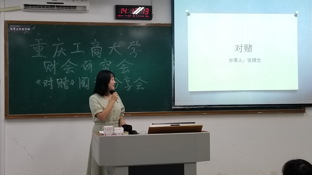 为了培养社团会员们的阅读兴趣,增强社团的凝聚力,营造浓郁的书香氛围。2019年4月19日下午14:00,重庆工商大学财会研究会第二期财经文化交流会暨《对赌》阅读分享会在南岸校区07113教室成功举办。