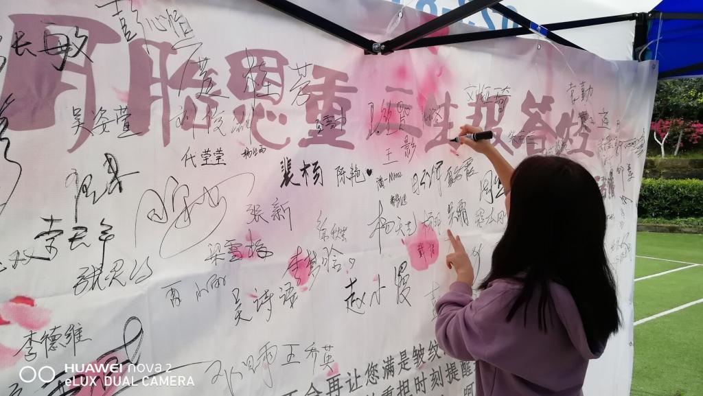 活动中期在校园内举行线下活动"一份爱的承诺书"、"给母亲的三行情书"、"以花寄情"等,勇敢的表达了我们对母亲坚定的承诺。