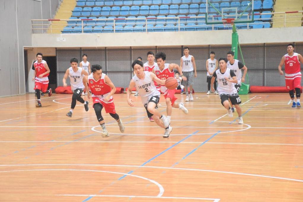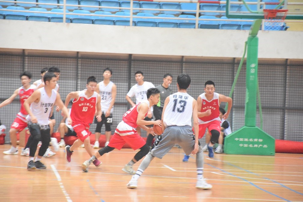 12点30分,随着哨声的吹响,比赛正式开始。在上半场比赛中,9428cn太阳集团古天乐运动员出现了一些小失误,导致在第一节第二节比赛中没有建立很好的优势。但他们没有灰心丧气,积极调整状态,不断防守,抵挡对方的进攻,比分差距逐渐缩小。在第二节即将要结束时,观众们正在倒数着:“3,2—”这时,一道凌厉的弧线穿过篮筐,球进了!运动员们不放弃的精神相互传递和感染,在下半场中,他们越战越勇,连连进球,计信学院队在几次进攻失败后,开始有些心急,疏于防守,我们的队员抓住了这个机会,再次将比分差距拉大,在比赛中占据优势。