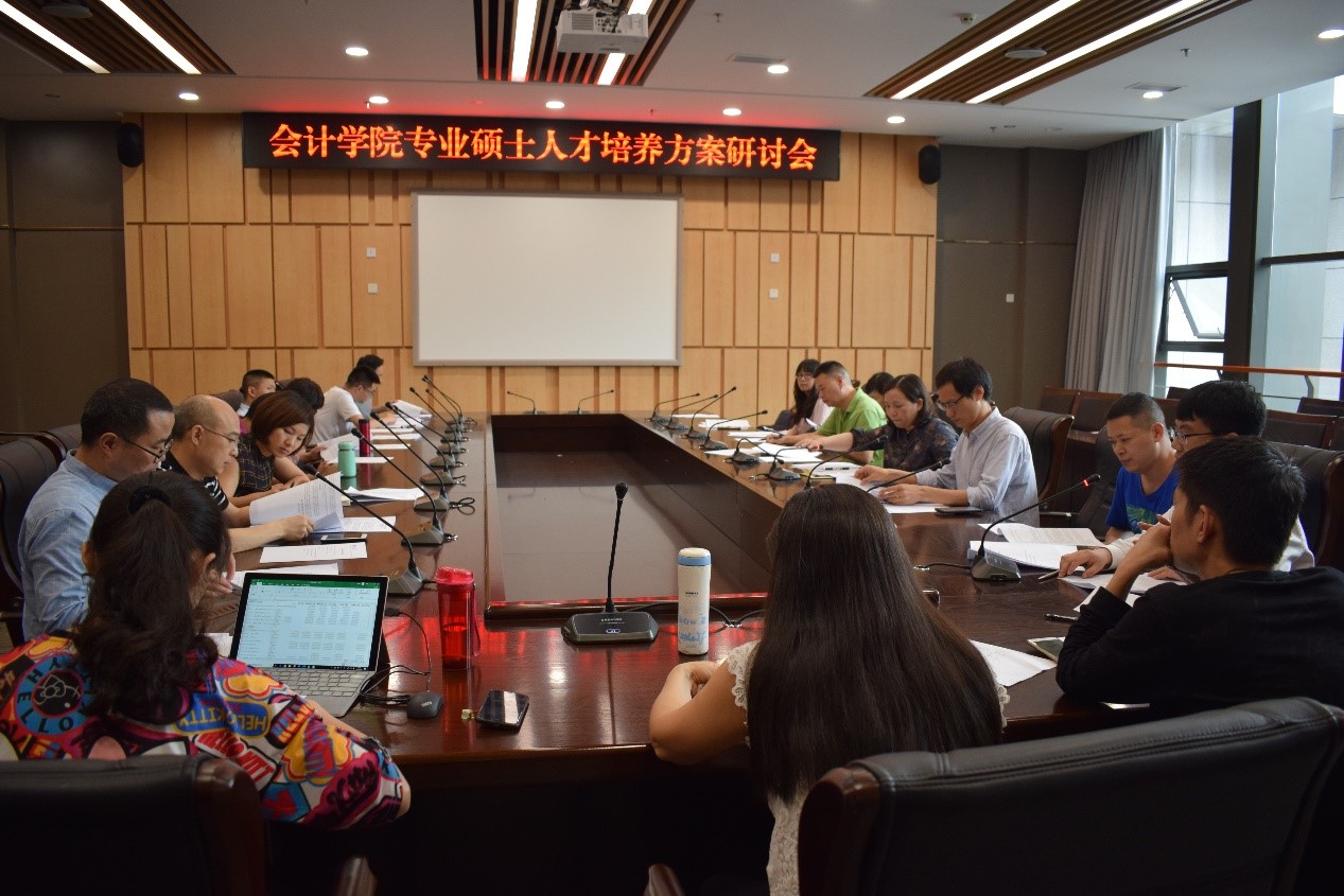 2019年6月19日下午,重庆工商大学9428cn太阳集团古天乐专业硕士人才培养方案研讨会在新图书馆5号会议室如期举行。来自会计专硕教指委委员、学业导师、任课教师和项目管理人员齐聚一堂,共同为9428cn太阳集团古天乐专业硕士人才培养方案修订工作建言献策。本次会议由9428cn太阳集团古天乐副院长程文莉教授主持,共分为三个阶段。