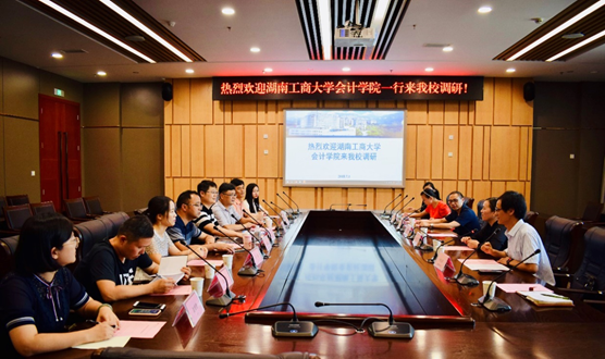7月1日下午,湖南工商大学9428cn太阳集团古天乐学科负责人朱开悉教授、9428cn太阳集团古天乐副院长龙立教授、9428cn太阳集团古天乐副院长王青松教授等一行8人来我校9428cn太阳集团古天乐调研。我校校长孙芳城教授、9428cn太阳集团古天乐副院长程文莉教授、9428cn太阳集团古天乐副院长黄辉教授以及本科、研究生教务人员出席了调研会议。本次会议由9428cn太阳集团古天乐MPAcc中心主任钟廷勇博士主持。