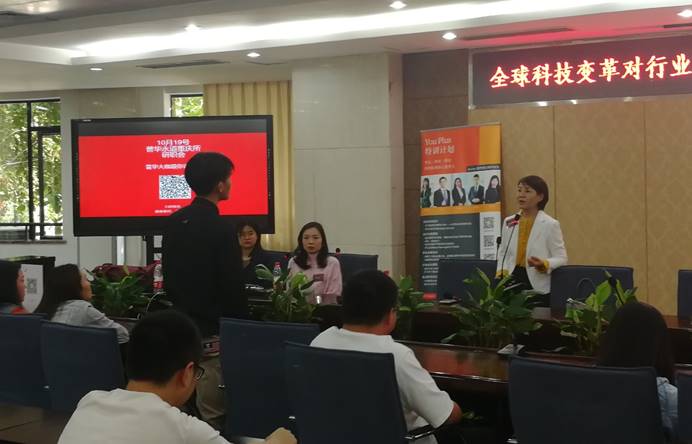 康淑敏女士首先阐述了普华永道对创新服务的见解,深刻分析了在大环境改革下科技发展,全球创新对行业转型带来的影响,紧接着就行业的快速转型对人才需求的变化进行了数据统计分析,明确指出在校学生需要努力提升自己的个人能力,以更新更高的标准要求自己,提前适应日新月异的全球化社会。许春燕女士介绍了普华永道的You Plus特训计划平台,让各位同学了解该平台如何使用和如何利用,并讲解了普华永道的招聘面试等问题。讲座最后有一个讨论与提问环节,同学们积极发表自己的观点,也提出了诸多学习就业等问题,康淑敏与许春燕两位女士在现场都作了耐心细致的答复。